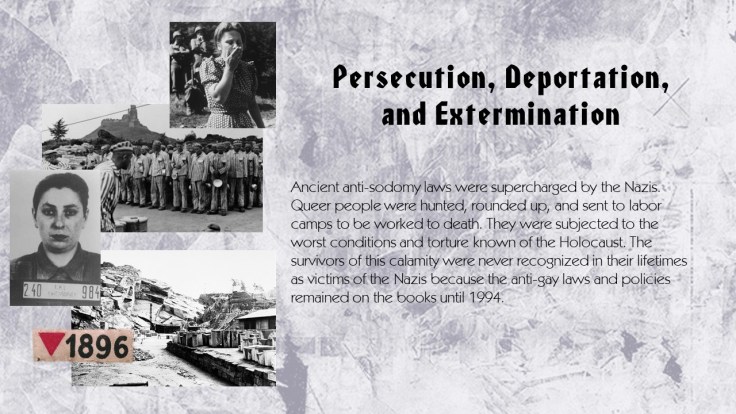 United States Holocaust Memorial Museum. “Pride Month: The Nazi Persecution of Gay People.” YouTube, 3 June 2020, https://www.youtube.com/watch?v=7hiOz14jh7k.